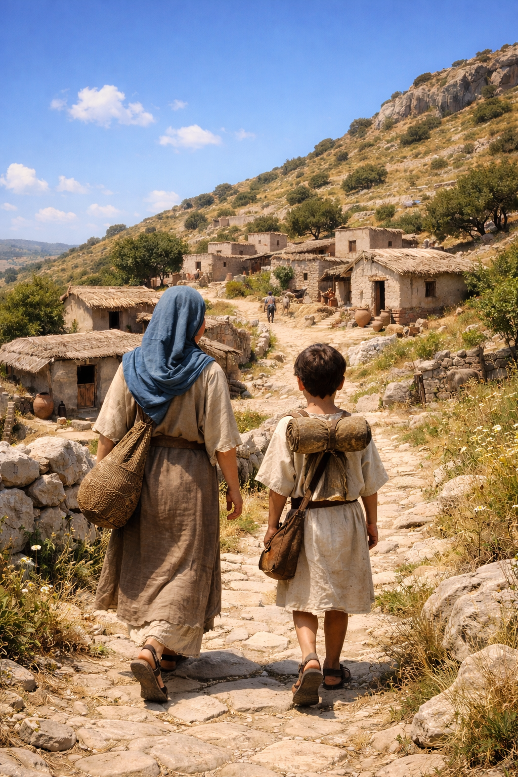 The next morning, they quickly found someone to help carry their belongings as far as Nazareth.